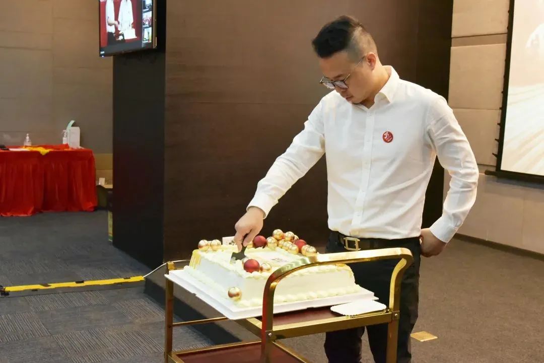 在胡成國的帶領下,各會場同時切開生日蛋糕,共同歡慶德力西生日快樂。